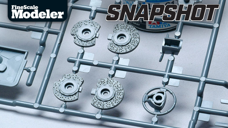 The brakes from a Tamiya 1/24 scale Aston Martin DBS are similar to what you may find in many other plastic model car kits. Here’s an easy way to detail them for a better appearance on your replica.