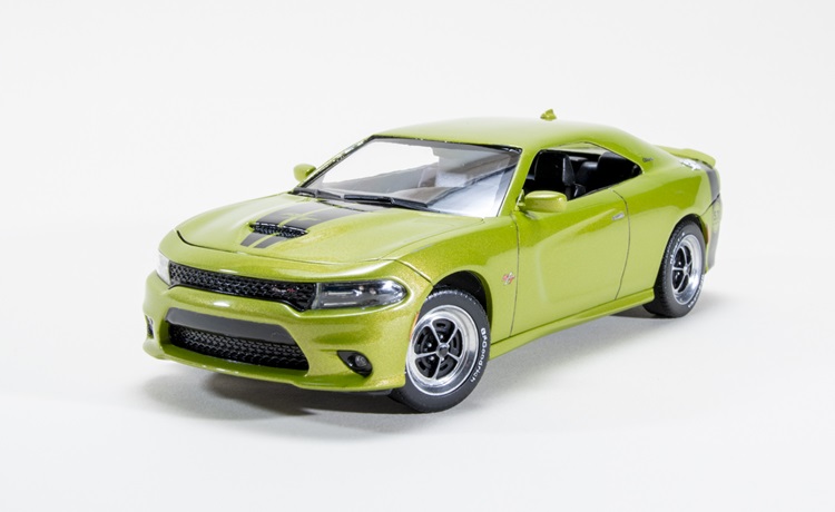 “I’m not a fan of modern four-door vehicles,” Chris said. So he turned an AMT 1/25 scale 2021 Dodge Charger into a two-door with a 1970s muscle-car feel. To do it, Chris grafted a resin 1970 Dodge Charger roof onto the AMT body, modified the inner and outer door panels, 3D-printed new wheels and tires, and applied modified decals he received from master car modeler Mike Dowd.