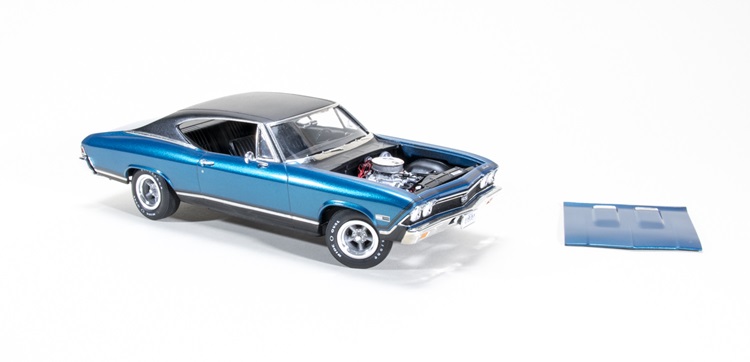 Wheels from Larry’s spares box set off his Revell 1/25 scale 1968 Chevrolet Chevelle. He plumbed and wired the engine, layered the trim in Bare-Metal Foil, and modeled a vinyl top. The unique paint job is Dupli-Color Cayman Green with a Clear Blue top coat.