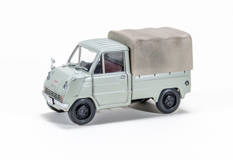Bob watched a video with a 1963 Honda T360 truck and was inspired to build a model of it. He found an Arii 1/32 scale kit of the vehicle and added a spare set of steel wheels for a more authentic look. Bob painted the little Honda Tamiya Grey Green and Wooden Deck Tan from spray cans. Some pastels and light washes show this truck is out and about.