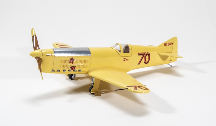 Keith Rider sold his R-4 to Bill Schoenfeldt after the 1936 racing season. The new owner replaced the engine, named it the Firecracker, and went on to win two events and get a top speed of 260 mph. Jeff’s 1/32 scale replica started as a Williams Bros. kit built from the box. He painted it with Testors enamels and picked out panel lines with a brown wash.