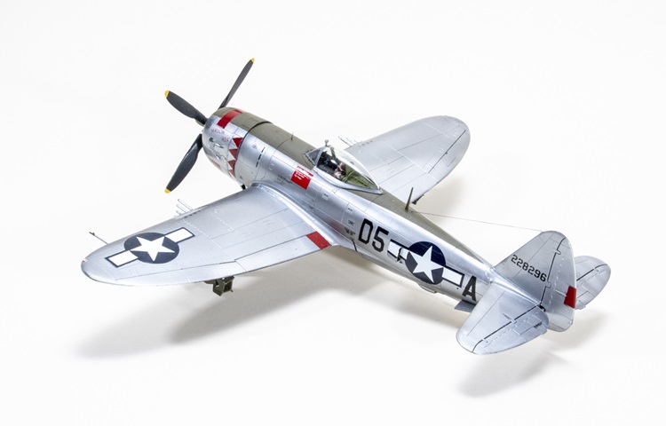 Master Model .50-caliber blast tubes replaced the kit guns on Jeff’s Hasegawa 1/48 scale P-47 Thunderbolt. Alclad II lacquers and Model Master enamels and acrylics provided the bare-metal finish, olive drab, red stripe, and red triangles. He used Barracuda Studios decals to mark the aircraft for “Haulin’ Ass,” flown by Lt. Jim McWhorter, 365th Fighter Group, “Hell Hawks,” 1944.