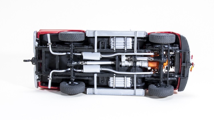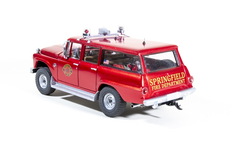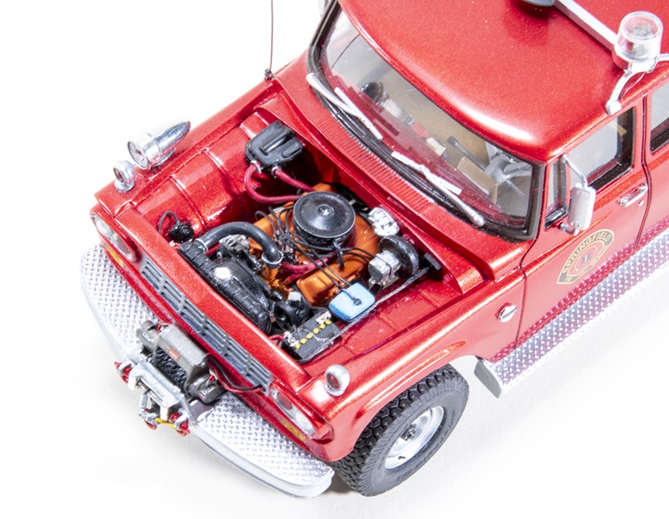 Marvin purchased a 3D-printed 1962 International Travelall online and then went to work scratchbuilding the engine compartment, interior, hitches, the front bumper and winches, and the aluminum exhaust. The custom decals mark the Travelall for the Springfield, Ohio, fire department. A “what if” build, Marvin said, it “just made sense,” because Travelalls were manufactured in Springfield.