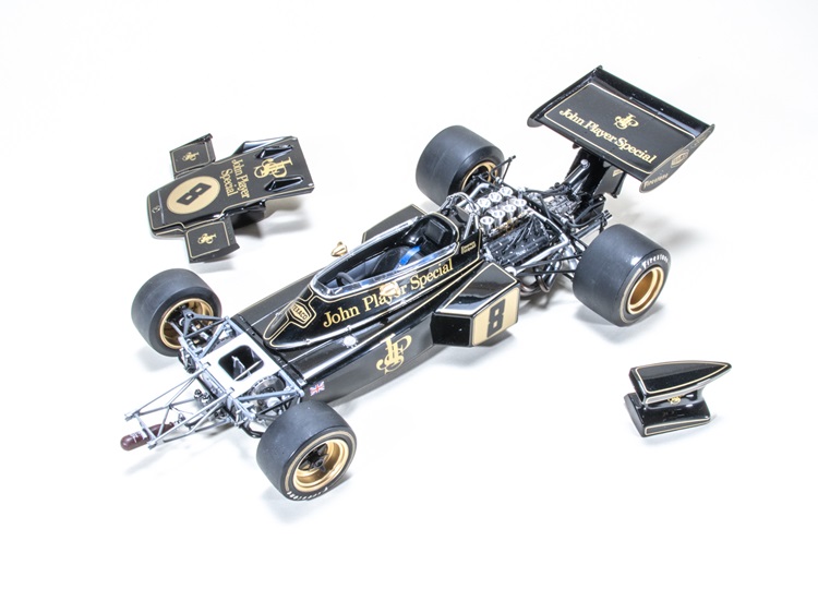 “I made this model as a child, and Mom tossed it after I couldn’t complete it,” Ron Francis said of his Tamiya 1/12 scale Lotus 72D. “I had to do it correctly when Tamiya reissued it.” And Ron has, going so far as to include a Model Factory Hiro detail set for the engine. While he didn’t weather his Lotus, Ron did shade the engine to bring out the finer points.