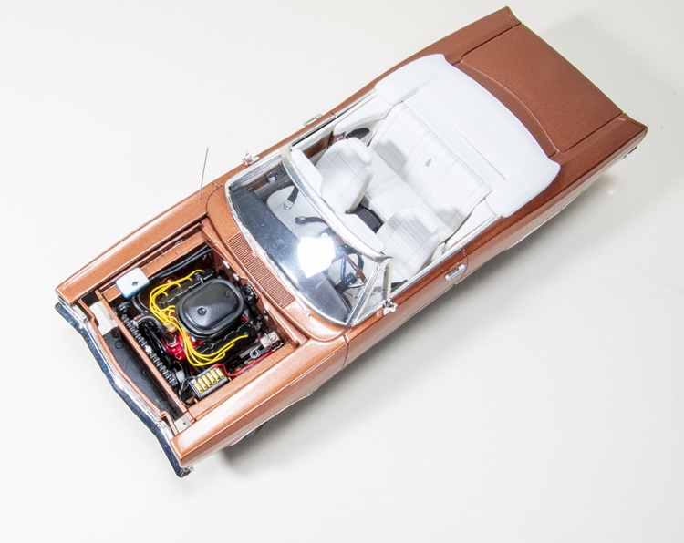 Carl Kreischer’s AMT 1/25 scale 1968 Dodge Coronet convertible wears PPG Bronze and a urethane clear. He wired the engine and picked out the trim with Bare-Metal Foil.