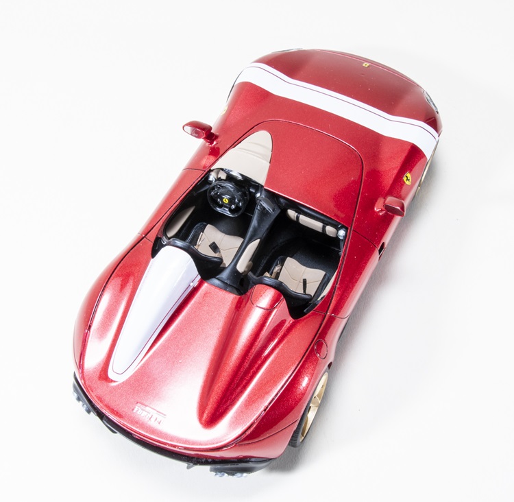 Alpha Models resin kits have heft, and Rocky Sink’s 1/24 scale Ferrari Monza SP2 is no exception. He built the model out of the box, primed the exterior and painted with Tamiya Metallic Red over Revell Chrome. The luxurious interior wears Tamiya Gloss Black and Wooden Deck Tan.