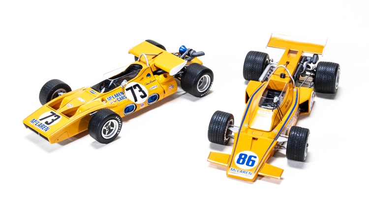 Indy car lovers will take notice of Dan Kristek’s pair of McLarens, the M15 and M16 driven by Peter Revon during the 1970 and 1971 racing seasons. He built the Lance Sellers 1/24 scale kits box stock and airbrushed them with MCW lacquers.