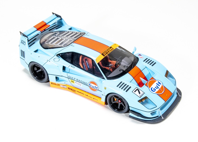What? A race car in Gulf colors? Chris Collier built a PZY 1/24 scale Liberty Walk Ferrari F40 and finished it with a fantasy option included in the kit. To get the classic scheme, he painted with Splash Colors Gulf Blue and MCW Fluorescent Orange before airbrushing 2K clear over everything. A little polishing later, and Chris was finished!