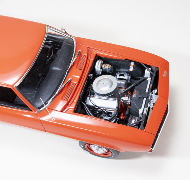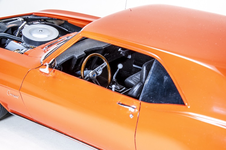 Jeff Glover hopes to own a 1969 Chevy Camaro COPO 427 one day. But until then, this 1/12 scale version built from a Revell kit will have to do. Jeff slid a 3D-printed 427 under the hood, printed wheels and tires, and rounded out the build with photo-etched metal emblems. He airbrushed the body Splash Paints Hugger Orange and topped it with a 2K clear.