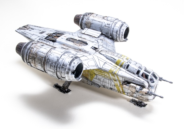 Michael built the AMT 1/72 Star Wars: The Mandalorian Razor Crest box stock, which meant he could concentrate on painting and weathering. Tamiya acrylics did the job, and Michael used the hairspray technique to chip the yellow stripes rather than relying on the kit-supplied decals. He flowed black Tamiya Panel Line Accent Color into the panel lines and finished with an Ammo Dark Wash.
