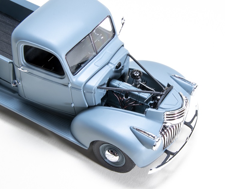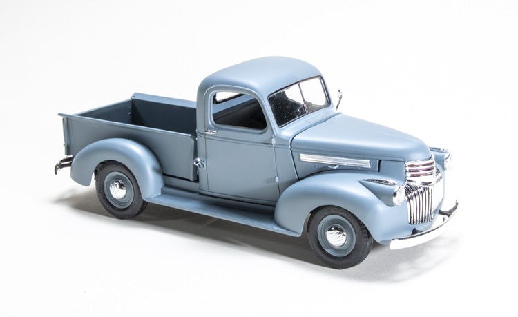 To model a factory-fresh pickup prior to delivery to the U.S. Navy, Mike built a Revell 1/25 scale 1941 Chevy out of the box. He painted with Tamiya lacquers straight from the spray cans.