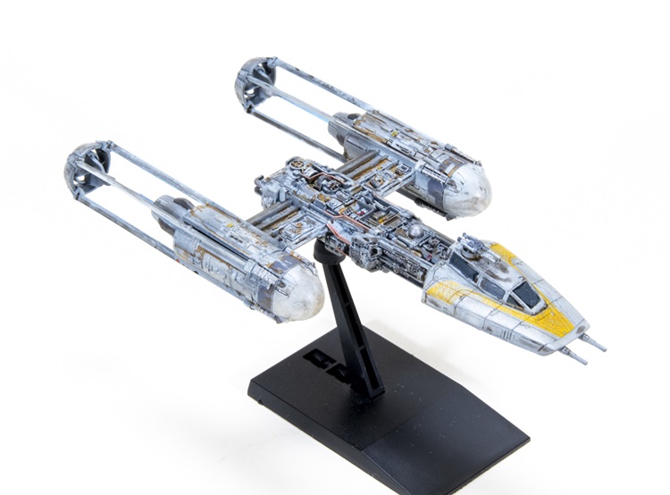 The Y-wing rates as one of Sergio’s three favorite starships in the Star Wars universe, so it makes sense he’d want to add one to his collection. This time, he went with a Bandai 1/144 scale kit, primed and performed some basic pre-shading. He masked for the yellow line up front and then hand-painted everything else. Sergio weathered with Vallejo acrylics and used Citadel Nuln Oil wash to darken shadows.