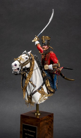 Jack was inspired by an Ernest Meissonier painting to finish this Gordon Mitchell 200mm French Napoleonic Hussar bust. He enhanced the horse’s harness with lead wire and painted with artist oils over acrylics.