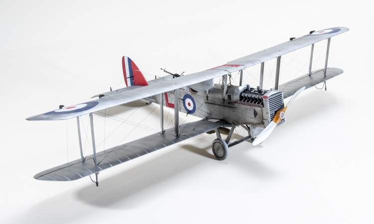 Gaspatch turnbuckles stand out on Gavin’s Wingnut Wings 1/32 scale DH.9a “Ninak”, finished for post-war service in Iraq circa 1923-24. After laying down a gloss black primer, Gavin airbrushed Tamiya Flat Aluminum for the biplane’s doped aluminum fabric and Alclad II White Aluminum for the metal sections. He cut stencils and painted his own roundels instead of relying and decals to the job. Tamiya enamel washes and artist oils covered the DH.9a with dust and spotted it with oil stains.