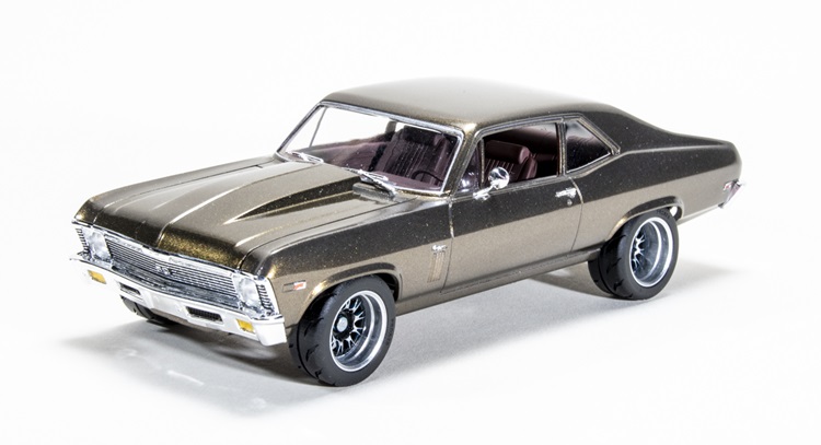 This Revell 1/25 scale 1969 Nova houses a 3D-printed twin turbo engine painted to match the airbrushed metallic body color. The acrylic paint, sprayed directly onto the plastic, was sealed under a coat of Tamiya Clear. To complete the look of his updated Chevy, Lloyd swapped in 3D-printed tires and wheels under the fenders.