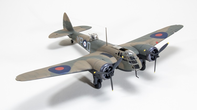 The British have never been shy about interesting aircraft architecture, and Harold added a 1/48 scale model of one of those unusual designs to his collection, the Bristol Blenheim Mk.IF. He built an Airfix kit out of the box, airbrushing Tamiya acrylics and lacquers and Mr. Color lacquers along the way. He made his own masks for the greenhouse and turrets, and masked for the soft-edged camouflage with poster tack. Tamiya Panel Line Accent Color distinguishes the model’s panels.