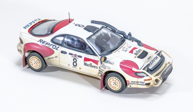 Chad concentrated on a clean, out-of-the-box build so he could then focus on dirtying up his Tamiya 1/24 scale Toyota Celica rally car. The white base coat is Tamiya lacquer straight from the can, while the dirt and dust is Vallejo acrylics misted with an airbrush.