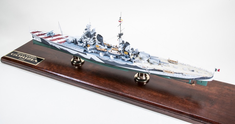 Chuck has been a long-time shipbuilder, and, after he took some time off, it’s great to see his work once again with this Trumpeter 1/350 scale Italian heavy cruiser Gorizia. Not one to leave improvements undone, he scratchbuilt the leadsman’s platforms, ventilator housings, slop chute, prop guards, paravane carts, ring buoys, boat booms, navigation lights, and the mainmast pennant. That’s all before easing back a bit and installing a Shipyard photo-etched metal set for Zara-class ships. How many parts went into this build, you ask? That’s easy: 1,225! Chuck painted the decks plank by plank, masking each one individually.