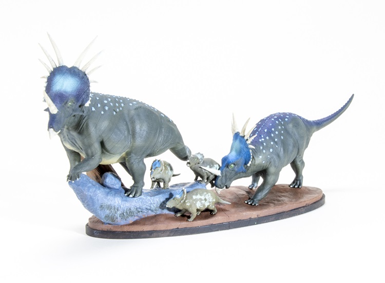 Violet used an airbrush for the first time to paint her 3D-printed Styracosaurus family! But that wasn’t the only technique she used to finish her model of happy dinosaurs. Violet also hand-brushed areas, mottled with a sponge, and picked out details with a toothpick.