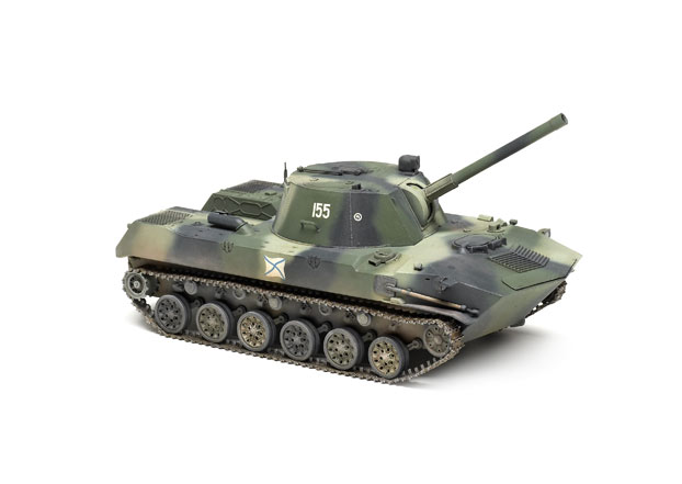 Parts are molded in soft gray plastic with nice detail and individual link tracks. Separate hatches are featured, but no interior detail. Separately molded road wheel arms are keyed but could be repositioned for display.