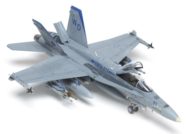 For two decades, Hasegawa's "Legacy Hornet" (A through D models, not the E/F "Super Hornet") has been the go-to kit for builders of 1/72 scale models. Finally, a state-of-the-art replacement has been released from Academy. While not a scale-down of its magnificent 1/32 scale kit, Academy's little "Bug" clearly achieves superiority. It is obvious from the moldings and optional parts that more versions are to come. There's no question a two-seater will be issued, as the cockpit tub includes the rear office as well as two ejection seats.
