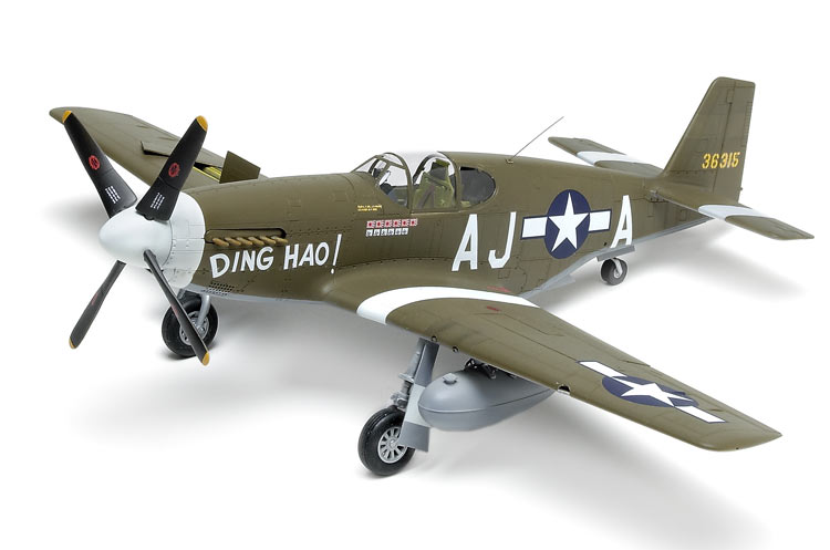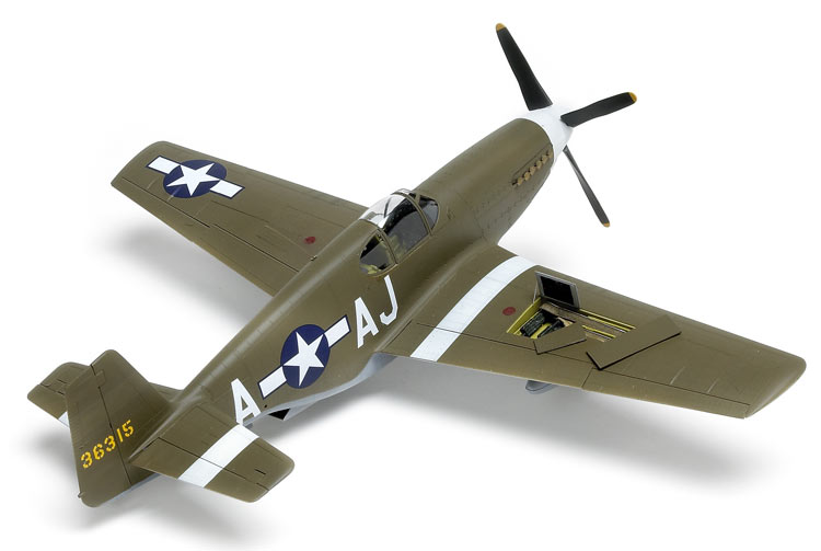 Neatly molded in light-gray plastic, the parts are flash-free with recessed panel lines and rivet detail (an issue with the Mustang, as the wings were puttied and smooth). Clear fuselage halves are provided as an option to display internal detail. Also included are photoetched-metal parts, vinyl tires, a complete engine, .50-caliber machine guns with detailed bays, oxygen bottles, and internal bulkheads and stringers. Options include a selection of underwing stores - two types of drop tanks, two types of rockets, and 500-pound bombs.