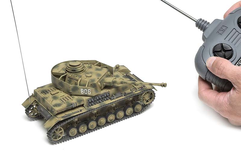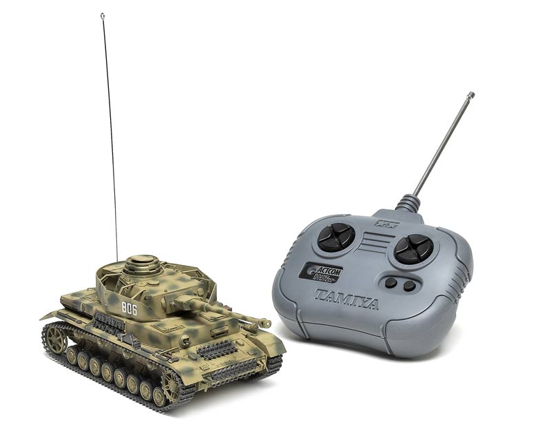 The kit looks like Tamiya's mid-1990s static Panzer IV, but with radio system, motors, hardware, and a new lower hull. It's not a toylike RC kit, but a scale model slightly modified for RC operation that's indistinguishable from a standard scale model, aside from its much-longer-than-usual antenna.