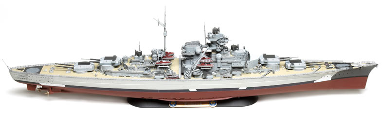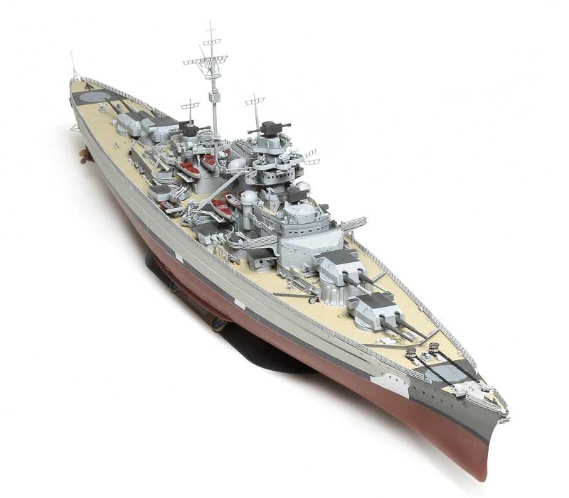 Revell Germany's latest ship kit is the World War II German battleship Bismarck. It features movable main armament, plastic hand railings, a one-piece main deck, detailed lifeboats, and two aircraft with optional wing folds. A two-page painting guide provides two different paint schemes.