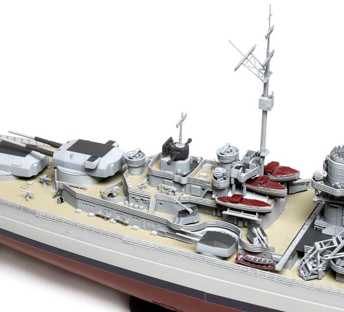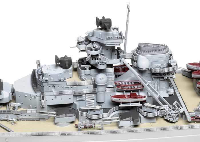 All the assemblies were glued in place without any difficulties. I painted the turrets and anti-aircraft guns, then installed them.