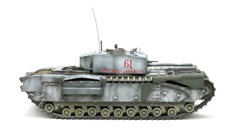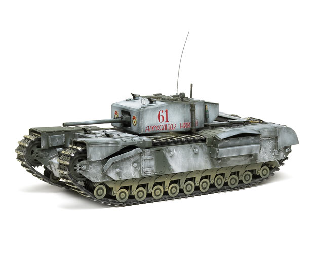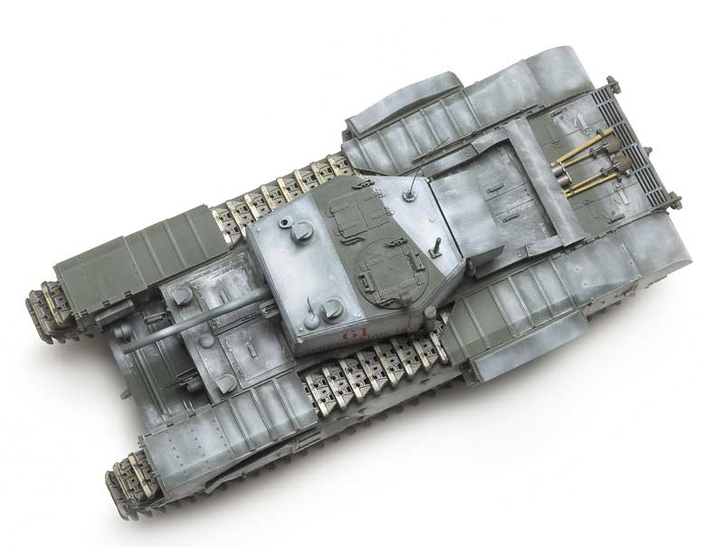 I was glad to see this model of the Churchill shown as it fought on the European and African fronts. The kit has a lot of modeling potential, but, because of its complexity, I cannot recommend it to beginners. It took me 30 hours to complete this kit.