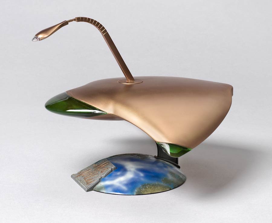Molded in translucent ivory plastic, the kit captures the manta ray lines of the movie craft. Included are a stand with an Earth-shaped base as well as colored clear parts for the nose, wingtips, and "eye."