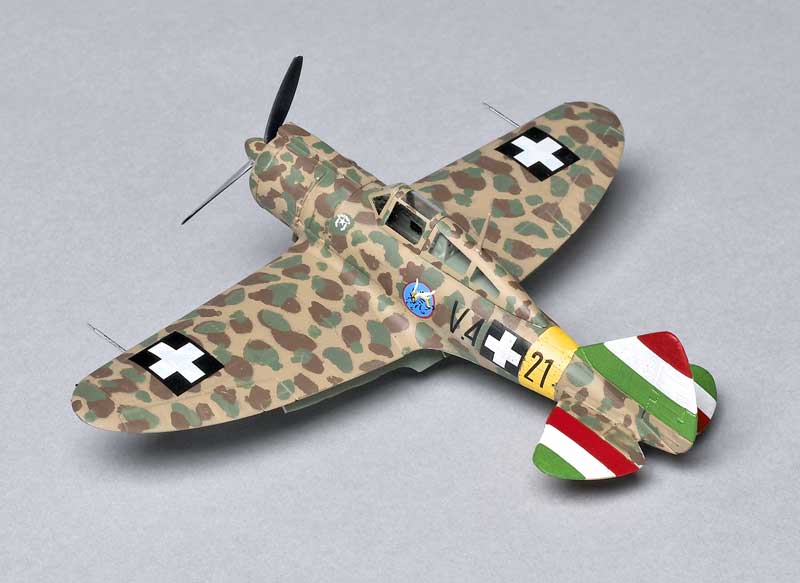 The hardest thing was choosing one of the six schemes. I chose the colorful markings of a Hungarian Héja (Hawk) of the Magyar Kiràlyi Honvéd Légierö (Royal Hungarian Air Force), 1/2 Dongo Vadasz Szazad (fighter squadron).
