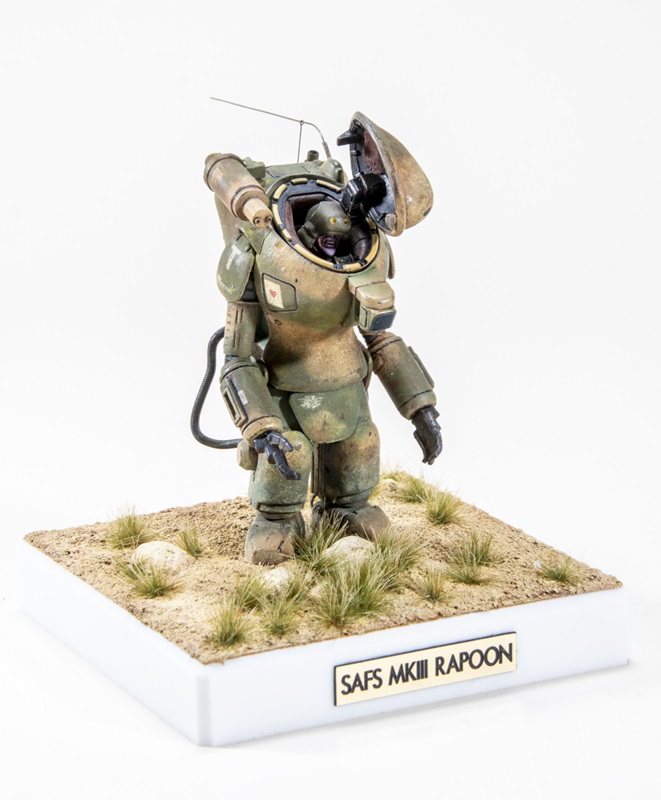 A soldier takes a breather in his Ma.K. SAFS Rapoon. Brian added guitar string for hoses to the 1/35 scale Aquamarine kit and simulated cast armor texture with stippled Mr. Surfacer 500. The war-weary look came from a combination of Tamiya acrylic paints and artist oil washes.