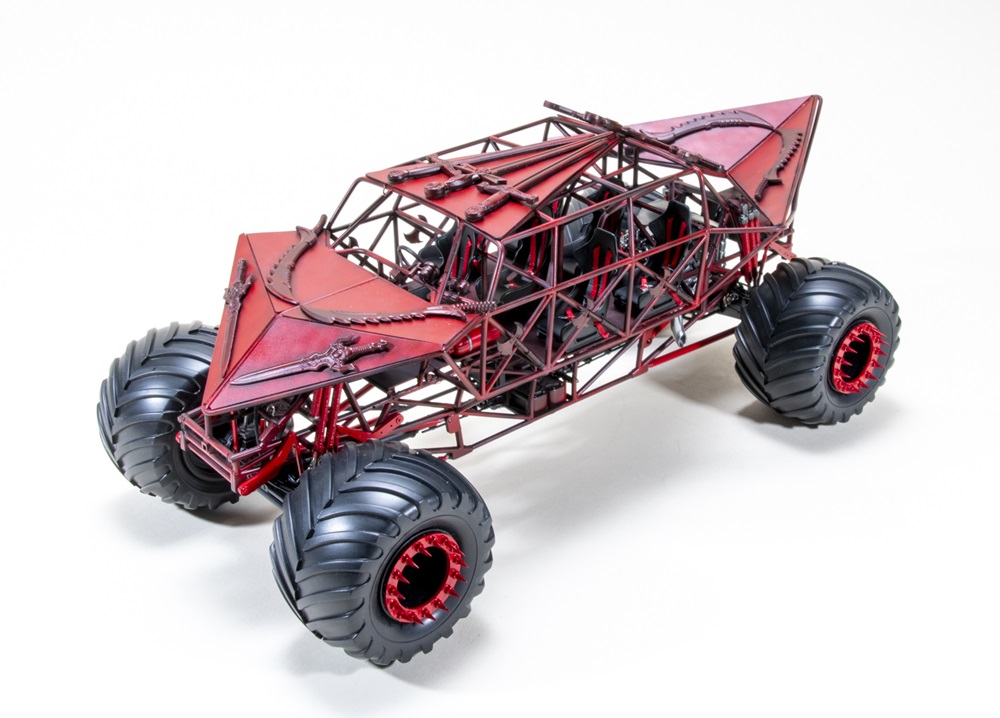 Joshua Morgan’s The Viking monster truck details a competition spec ride pushed to the limits. Starting with an AMT 1/25 scale Grave Digger, he discarded about 90% of what was in the box. Joshua scratchbuilt the chassis and a majority of the details. He airbrushed Gravity Paints Chevy Red Hot over a marbled base for the curdled crimson appearance. Check out those swords!