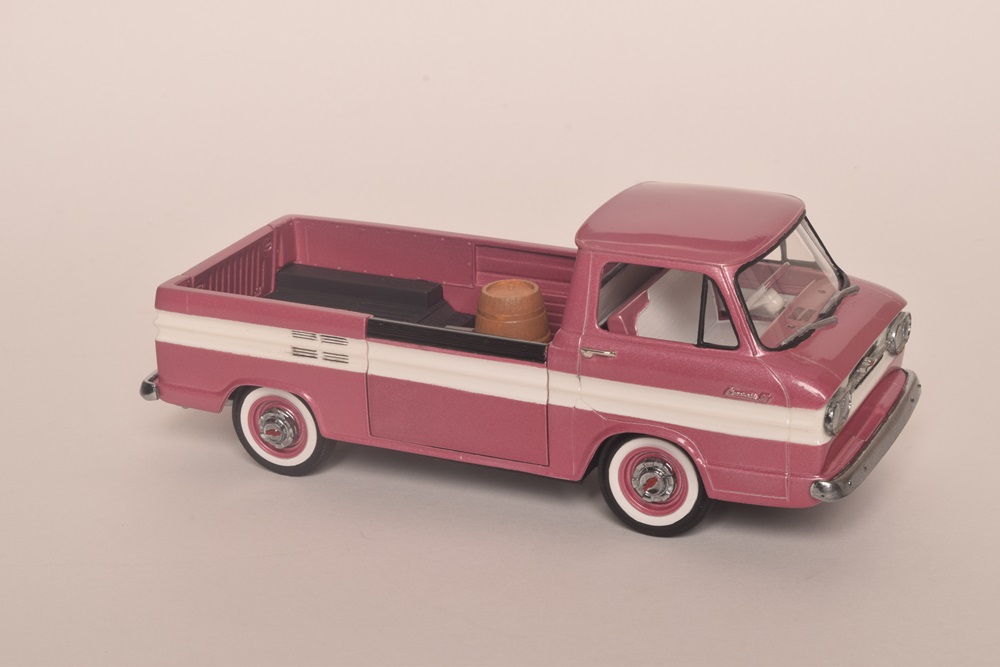 Inspired to honor a friend who had recently passed, Glenn Marek crafted this 1/25 scale 1961 Chevy Corvair rampside pickup, based on the resin kit from Best Model Car Parts. He felt challenged yet satisfied with the two-tone paint scheme, and says the job was made easier thanks to using Model Car World leveling thinner.