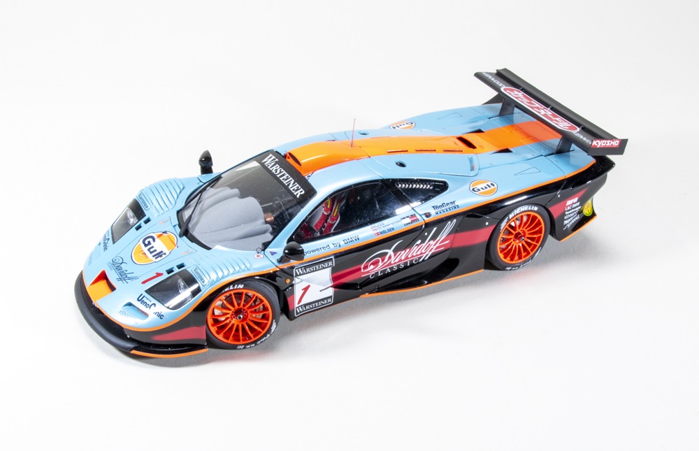Splash Paints decorate John’s Aoshima 1/24 scale McLaren F1 GTR longtail. He installed RB Motion wires and fittings along with a Hobby Design detail set to improve the model’s overall look. After the decals, John sealed the Gulf Team markings under a glossy 2K clear.