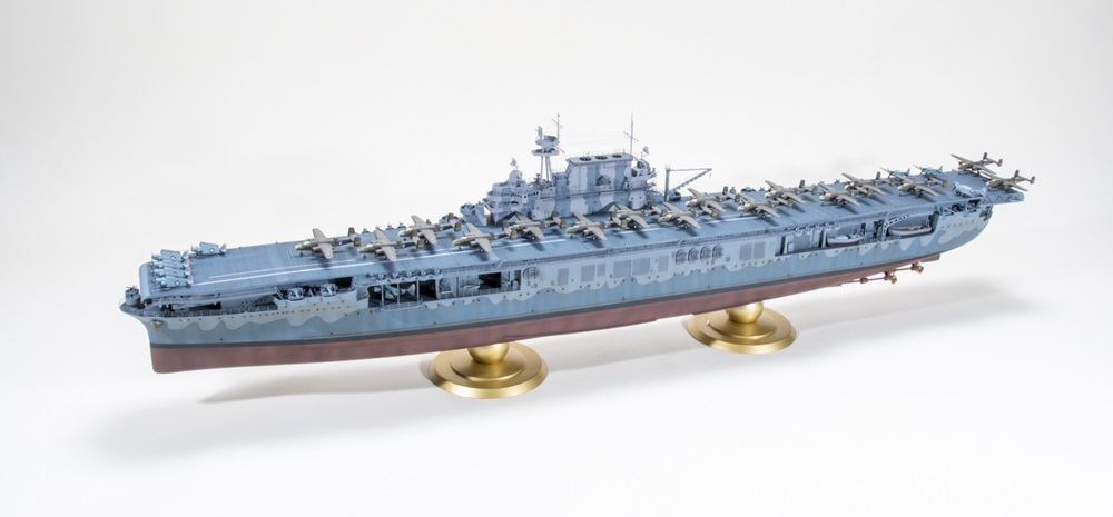 (CV-8) has more than 400 photo-etched metal detail parts, and Mark cut out the door to the hangar deck to allow him to detail it and let viewers see inside.