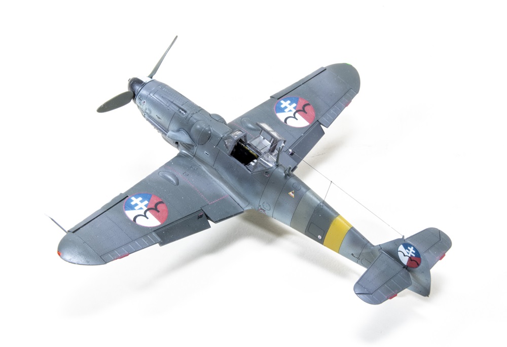 This Messerschmitt Bf 109G-6 built from an Eduard 1/72 scale kit features Eduard aftermarket cockpit, landing gear, and wheels. James airbrushed the camouflage with MRP paints and marked the fighter for service with the Republic of Slovakia.