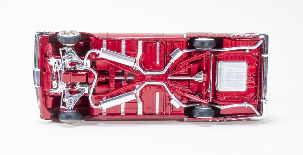 To get a 1959 El Camino built as a traditional lowrider, Wes Salazar seriously modified a Revell 1/25 scale 1959 Impala chassis and suspension to fit under the body and bed. He brought in and wired a 1941 Chevy engine and further customized the Camino with LMCP wheels, hydraulics, and skirts. A metallic gold served as a base for Tropical Glitz Merlot, and Tamiya Black made the perfect counterpoint.