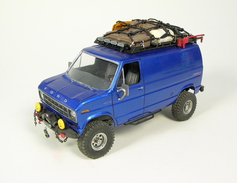 Steve Norsek covered his cross between MPC 1/25 scale ‘77 Ford Cruising Van and AMT Superstones F-150 with Tamiya Metallic Blue. Fireball wheels and tires, a wired and plumbed engine compartment, and overlanding gear from 1/24 scale rock crawlers complete the vehicle.
