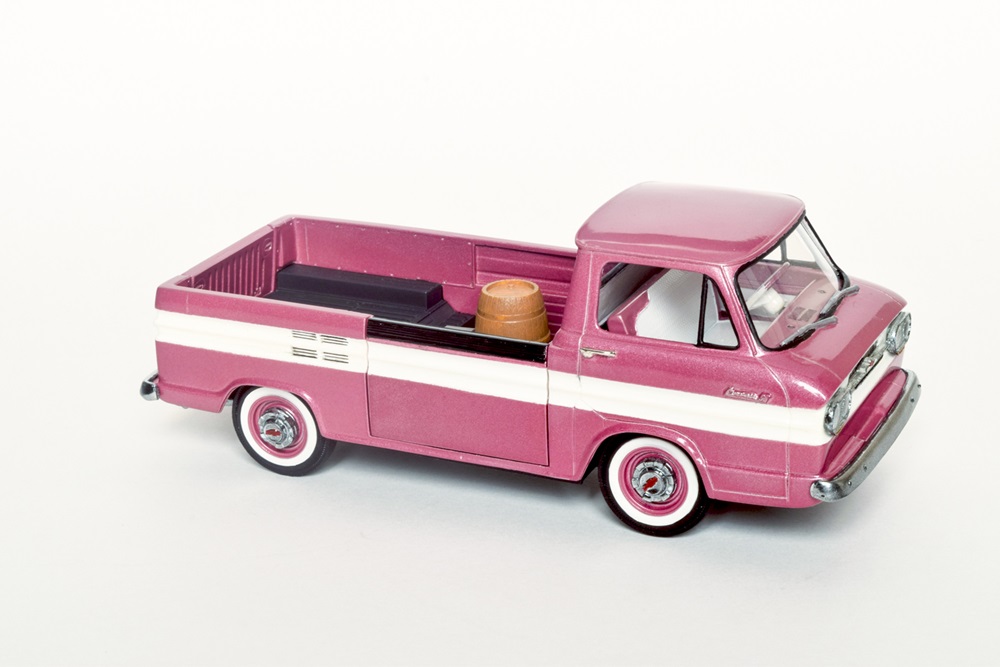 Riding in a friend’s 1961 Corvair rampside pickup inspired Glenn Marek to build a replica. Using a Best Model Car Parts 1/24 scale resin kit along with Tamiya Light Red Pearl paint and MCW Clear brought his idea to life.