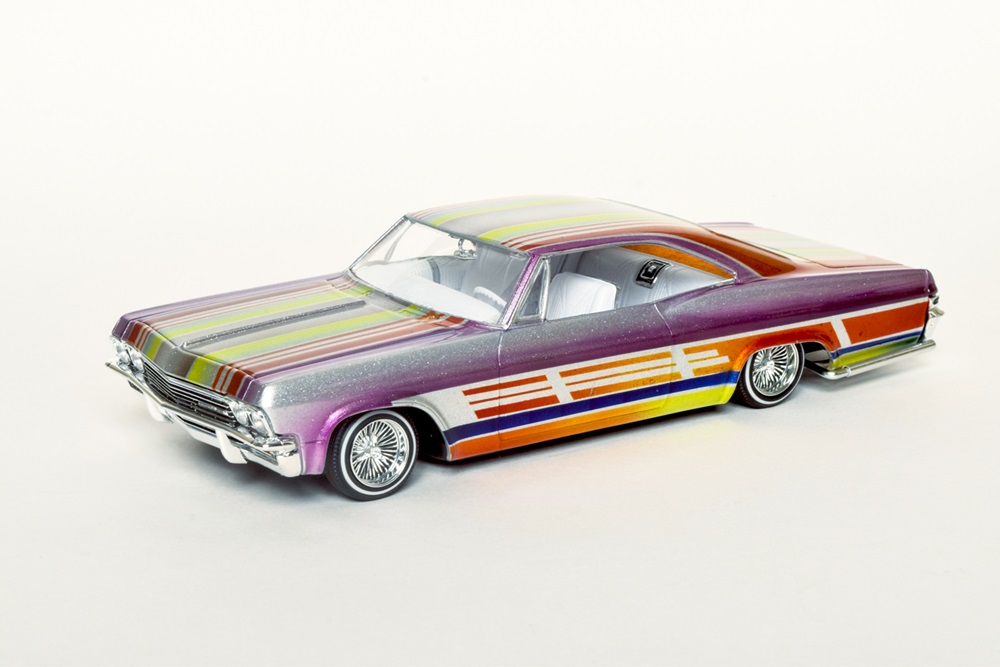 Ron Nelson Sr. once again dazzled the crowd with his one-of-a-kind lowrider creation from a 1/25 scale ‘65 Chevy Impala. He used lengths of masking tape and House of Kolor lacquers for the custom paint job. Butterfly pipes completed the build, adding a more realistic appearance.