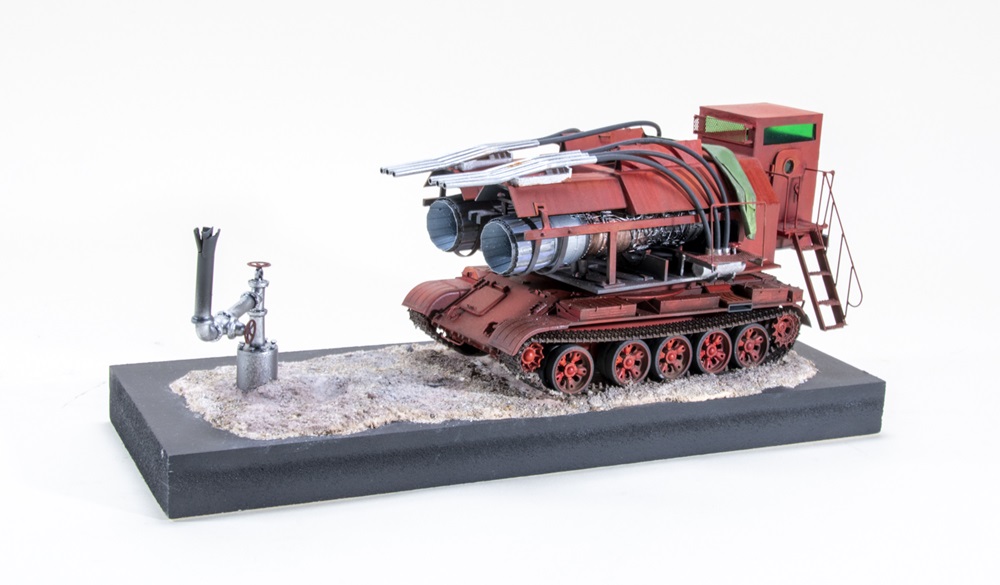Certainly one of the most unusual models at the convention this year, Dave entered his 1/48 scale Big Wind Hungarian firefighting tool used in Kuwait in 1991 to put out oil-well fires. Underneath is a Tamiya 1/48 scale T-34 tank chassis. Dave scratchbuilt the top, incorporating MiG-21 engines from Tempmodels.