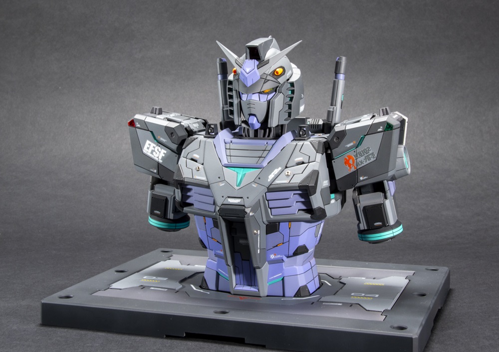 Custom panels and metal parts modify Chris’ Bandai Spirits 1/48 scale RX-78F00 Gundam bust. Gaia Notes and Mr. Color lacquers make up the mostly airbrushed finish.