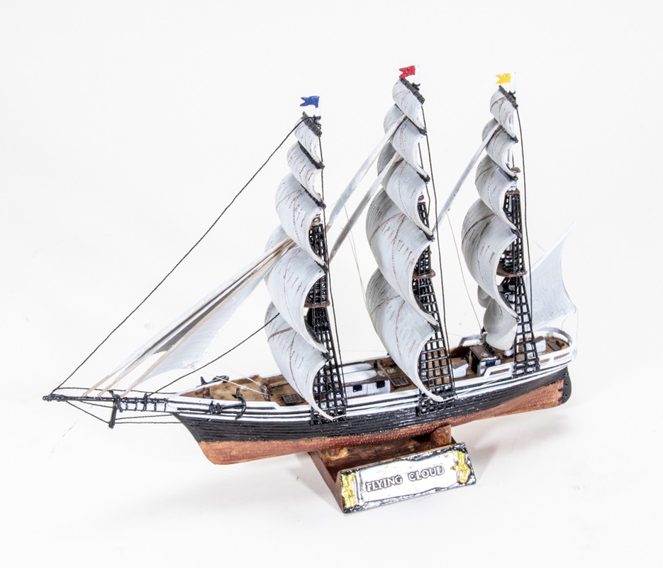 Dale built a Pyro 1/500 scale Flying Cloud on a lark, a bit of whimsy. Why not? He brush-painted the whole model and added foil to the nameplate. Then he thought to take it to contests, just to show it and tell the tale. Lo and behold, he’s won 1st, 2nd, and 3rd place with it! How’s that for reviving an old kit!