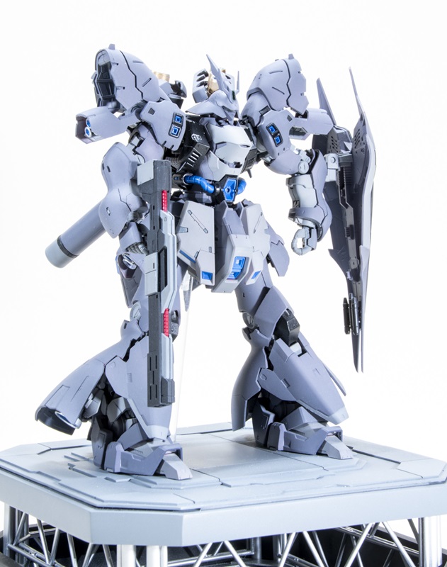 Allen’s intimidating Bandai 1/144 scale Sazabi stands atop a base scratchbuilt from styrene sheet and rod. The mech itself was built out of the box, primed with Vallejo Gray Primer, and decked out with light coats of Vallejo Mecha paints before receiving a sealing coat of Vallejo Ultra Matt Varnish.