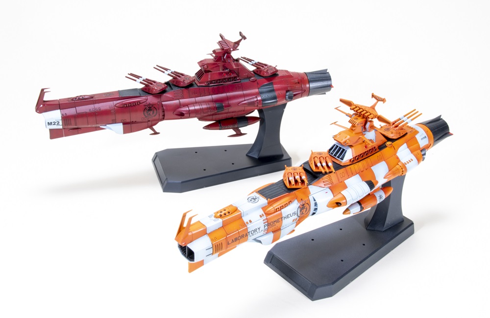 Whether you call it Star Blazers or Space Battleship Yamato, the anime is foundational for many reasons, not the least of which is technology and vehicle design. Terry built two Bandai 1/1000 scale EDF dreadnoughts, one Laboratory Prometheus that operates in the time fault (orange), and the other deployed to the Mars Defense Front and painted red like the planet. For the Mars dreadnought, Terry primed the hull green to add depth to the red sprayed over it. The Prometheus required a quick bit of masking. Weathering was handled with watercolors.